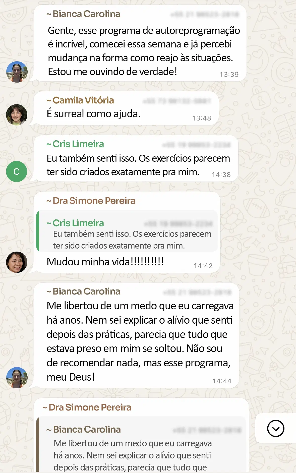 Os resultados são profundos e transformadores: mudanças comportamentais, emocionais e até físicas começam a acontecer de forma nítida. Situações que antes despertavam gatilhos de medo, ansiedade ou fobia passam a ser vividas com muito mais leveza e equilíbrio.